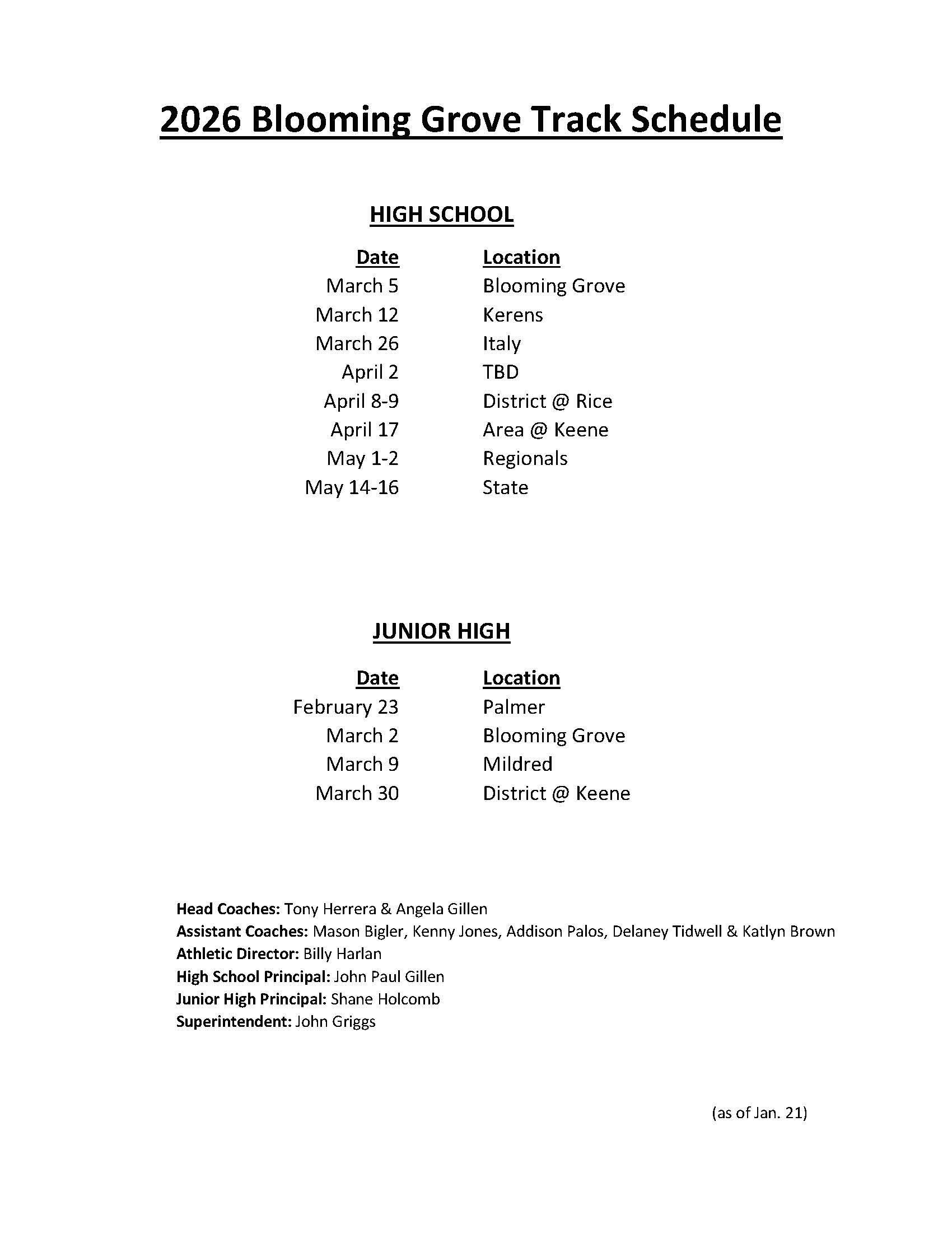 2026 Track Schedule